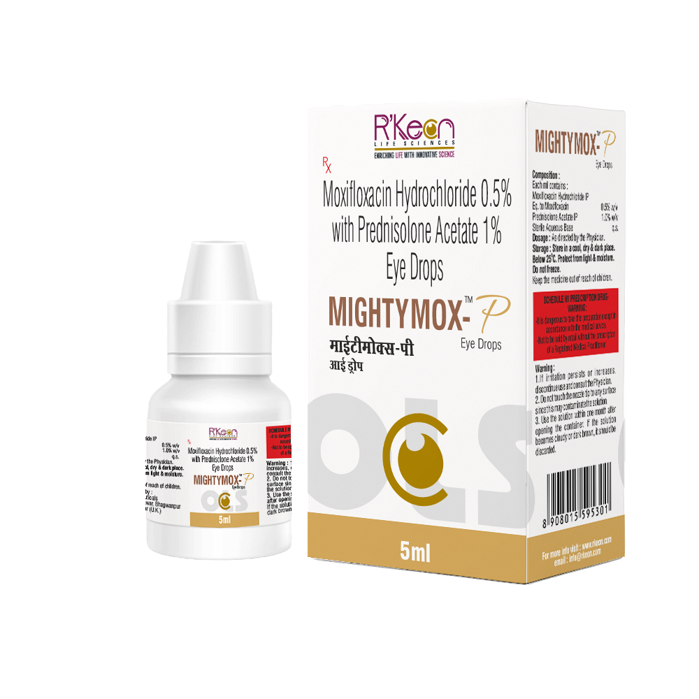 Mighty Mox-P Eye Drop is a combination of two medicines used in the treatment of bacterial eye infections. It kills and stops the multiplication of bacteria that causes infection. This way it helps in relieving redness, itching, and swelling.