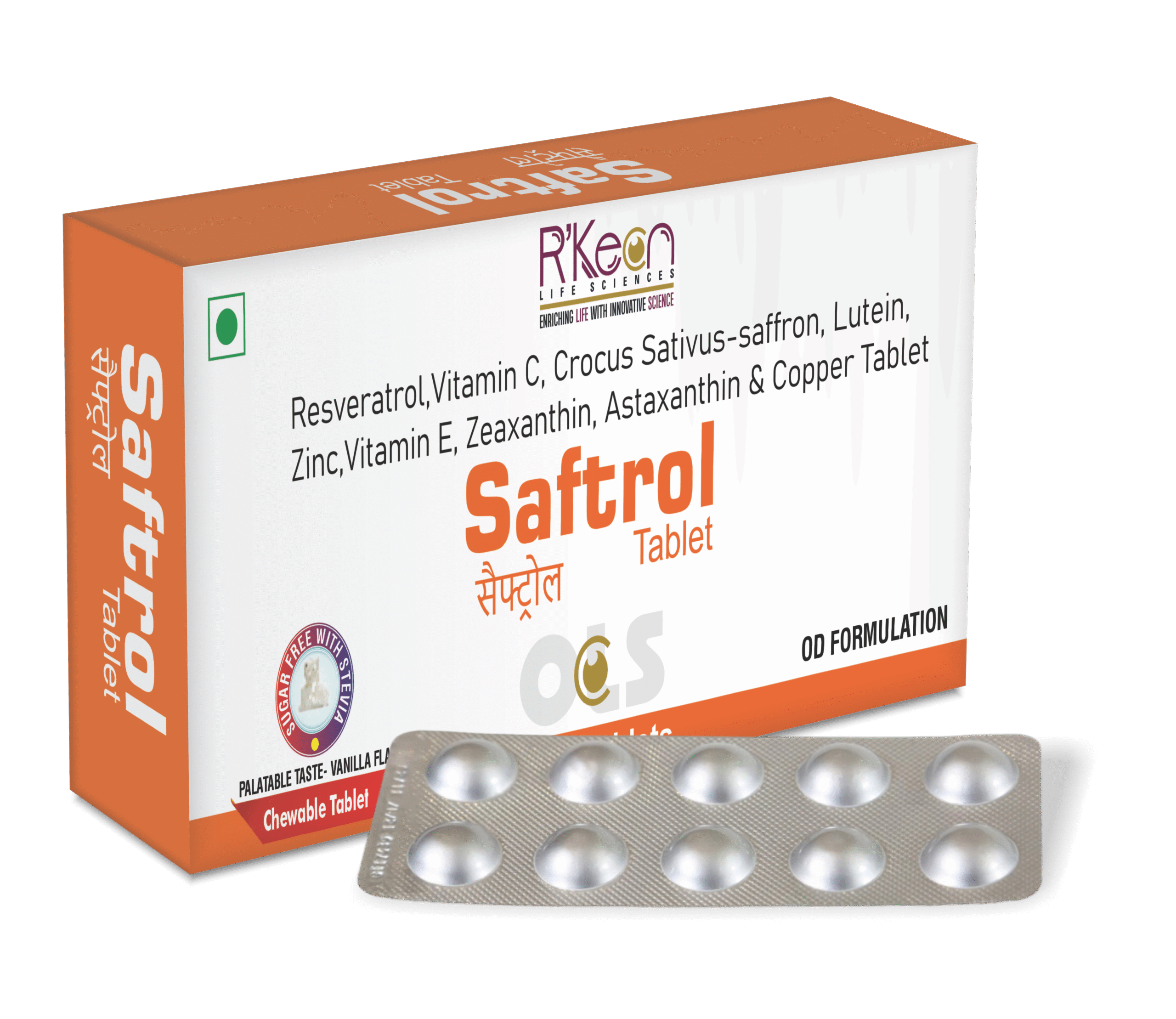 Vitamin C 40 mg, Vitamin E 10 mg, Zinc 17 mg, Lutein 10 mg, Astaxanthin 2 mg, Zeaxanthin 2 mg, Crocus Sativus-Saffron 20 mg, Resveratrol 100 mg, Copper 1.5 mg